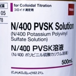 ♦ N/400 PVSK 溶液係以1 N PVSK 母液稀釋400 倍所得,濃度為0.0025 N,用作滴定幾丁聚醣樣品中–NH₃⁺之陰離子高分子滴定劑,其終點電位變化清晰,適合用於去乙醯度(DD) 測定。