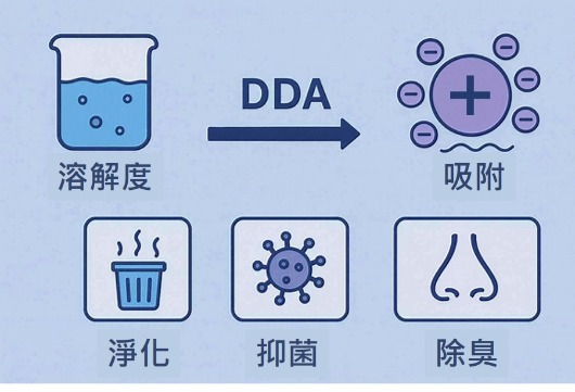 當DDA越高時,殼聚醣的溶解度通常會提升,在水中能更容易展開;同時它能更有效吸附帶負電的雜質,進一步展現出優秀的除臭、淨化或抑菌能力。