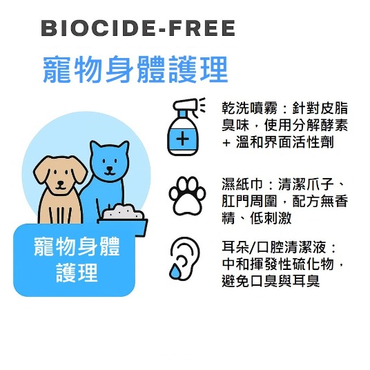 在同質化競爭激烈的市場中,BIOCIDE-FREE技術創造明確差異化,提升消費者信任與好感度,為品牌注入新動能。而隨著全球寵物市場規模持續擴張,此技術具備高附加價值與商業潛力,不僅滿足現代飼主對於寵物安全與綠色永續的期待,更成為寵物們照護產品升級的關鍵驅力。